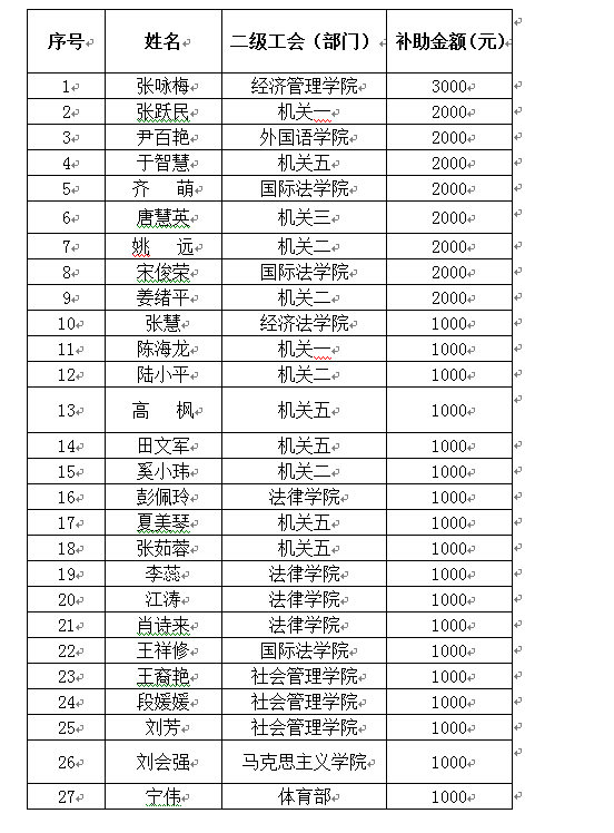 新利18官方客服元旦春节教职工帮困慰问补助名单