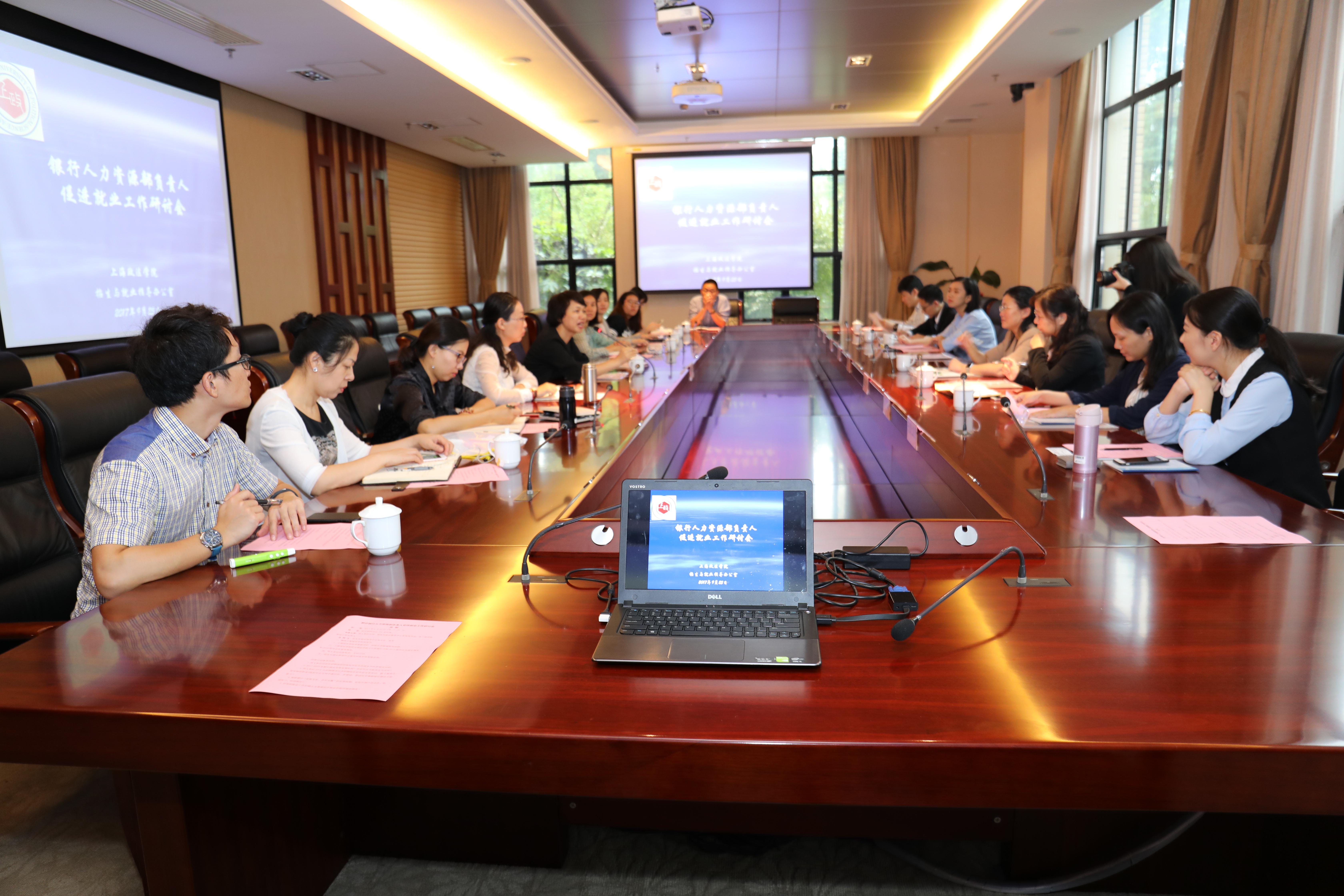 每年的9-10月,是银行系统面向2018届毕业生进行校园招聘的网申报名高峰期,我校2017届毕业生在银行系统就业人数呈上升态势,并得到了毕业生的欢迎。为进一步与银行系统加强交流、互相联动、深化合作、实现共赢,9月25日下午,我校招生就业办在综合研究中心101会议室组织召开了部分银行人力资源部负责人促进就业工作研讨会。中国工商银行上海市分行、中国农业银行上海市分行、中国银行上海分行、交通银行上海分行、上海农村商业银行、中国邮政储蓄银行上海市分行、上海银行、宁波银行等银行人力资源部负责人参加了研讨会。校党委副书记、副校长周银娥出席会议并讲话。招生就业办相关人员、二级学院党总支副书记及辅导员参加了会议。会议由招生就业办副主任徐丽红主持。