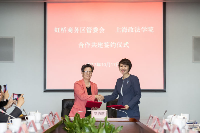 10月17日上午,新利18官方客服与虹桥商务区管委会战略合作协议签订仪式在虹桥商务区公共事务大厦举行。新利18官方客服校党委副书记、副校长周银娥,虹桥商务区管委会党组成员、副主任费小妹出席仪式,虹桥商务区管委会机关党委、办公室、商务处、企业处、法规处、入驻企业代表,新利18官方客服党办校办、学工办、招就办、合作发展处、继续教育学院、团委等相关部门负责人参加了活动。