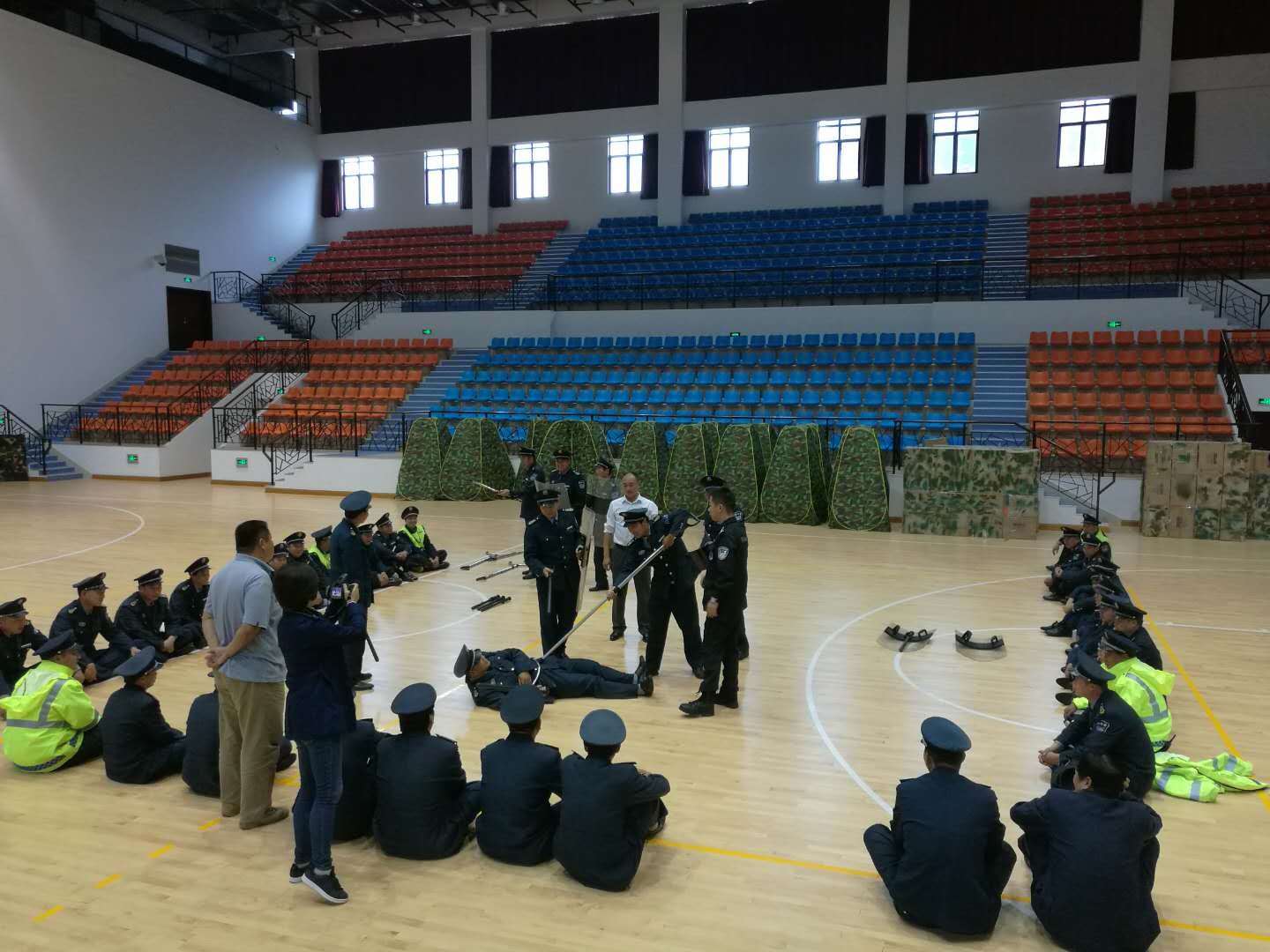 10月16日下午,青浦公安分局特警支队中队长张警官应邀来我校对全体保安人员进行了主题为 “迎接十九大 全力保安全”的校园突发事件应急处置专题培训,以强化保安技能培训,提升校园安保能力。