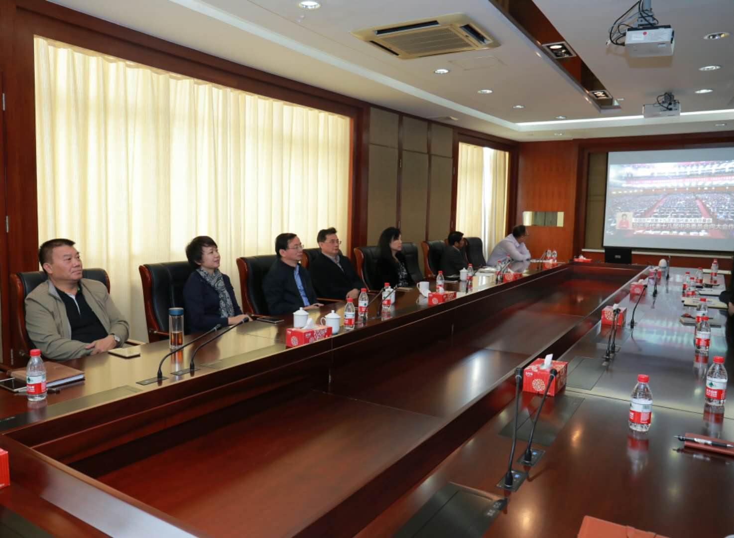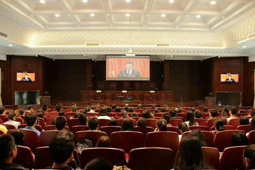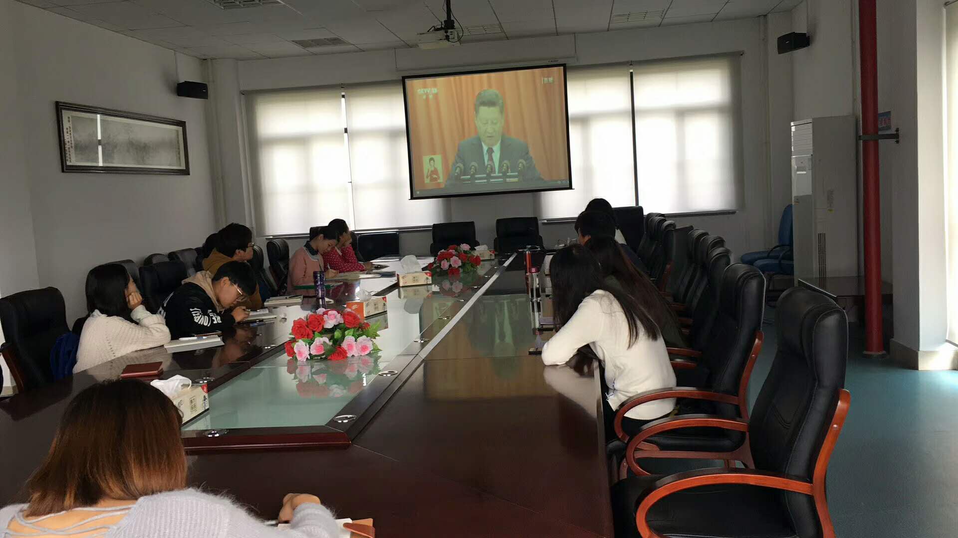 在会议室、办公室、多媒体教室、宿舍、食堂,大家秩序井然地收看和收听了十九大的开幕式盛况,聚精会神、边看边记。习近平总书记的报告让大家深受鼓舞、倍感振奋。