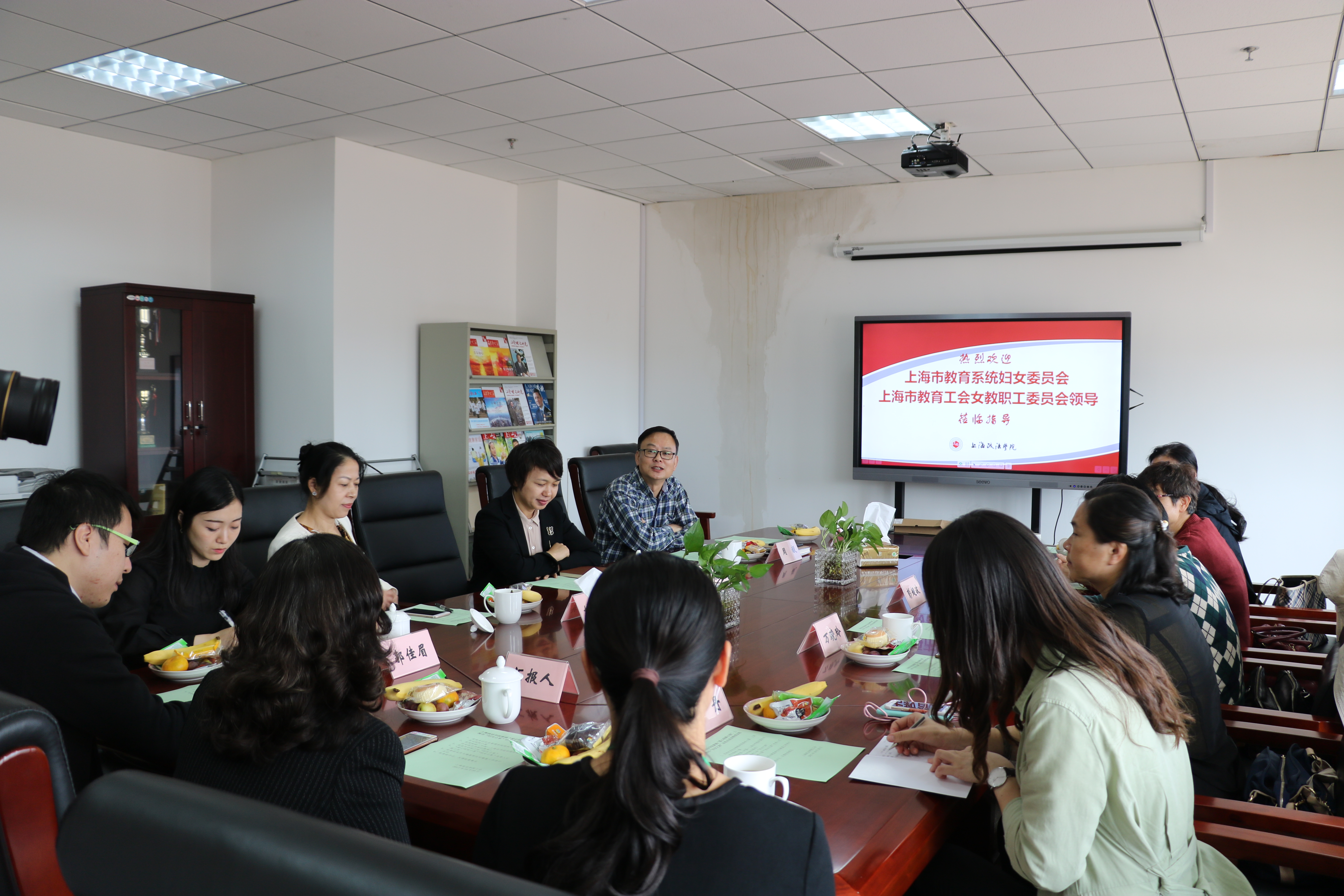 10月20日上午,上海市教育系统妇女工作委员会副主任彭超波带领上海市教育系统妇工委、女工委及兄弟院校工会领导专家组成的检查组来我校检查指导工作。校党委副书记、副校长、工会主席周银娥,校工会常务副主席周毅,校工会女工委委员、外国语学院总支书记姚善英和研究生处处长赵俊陪同进行了走访检查。