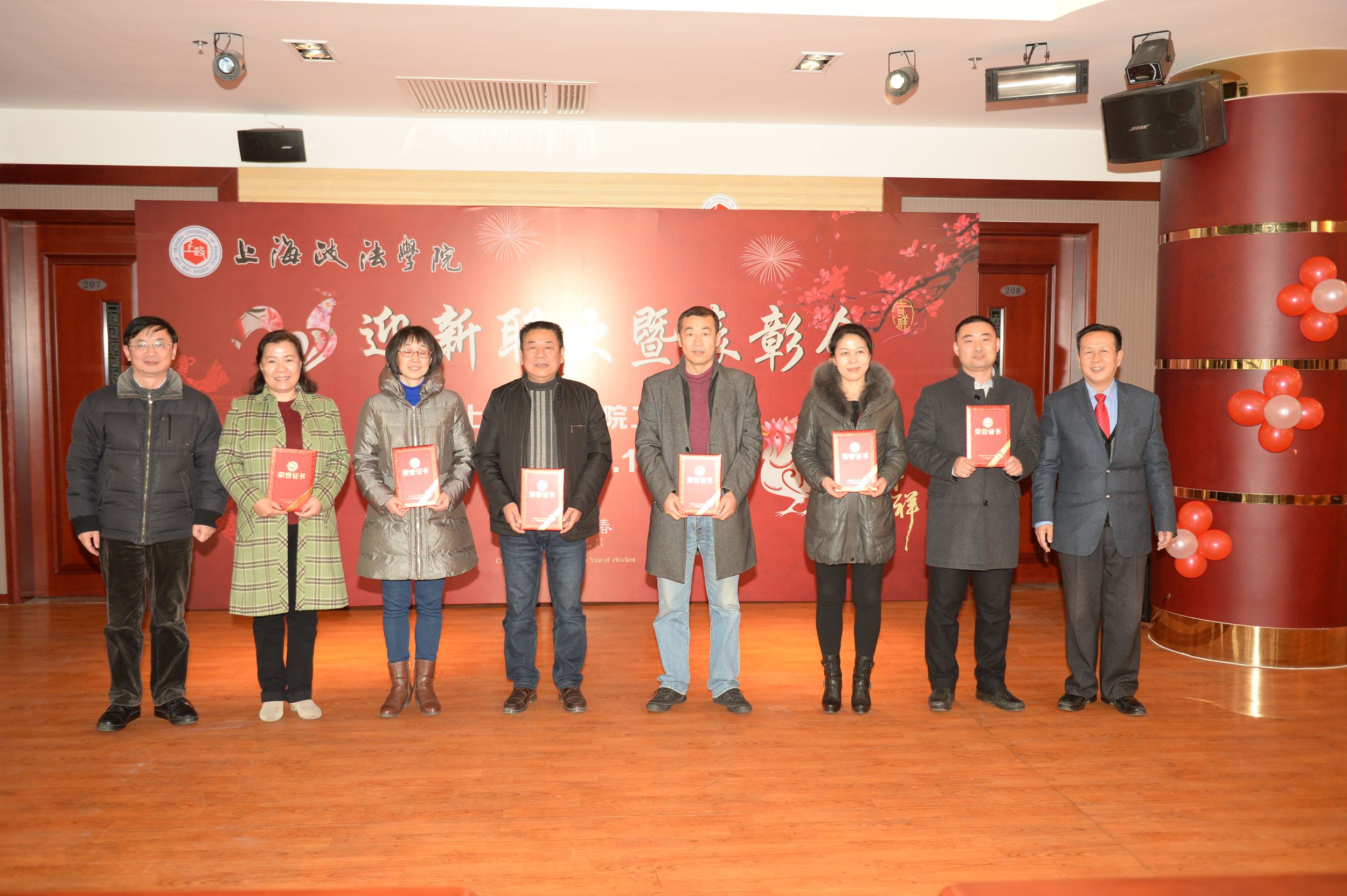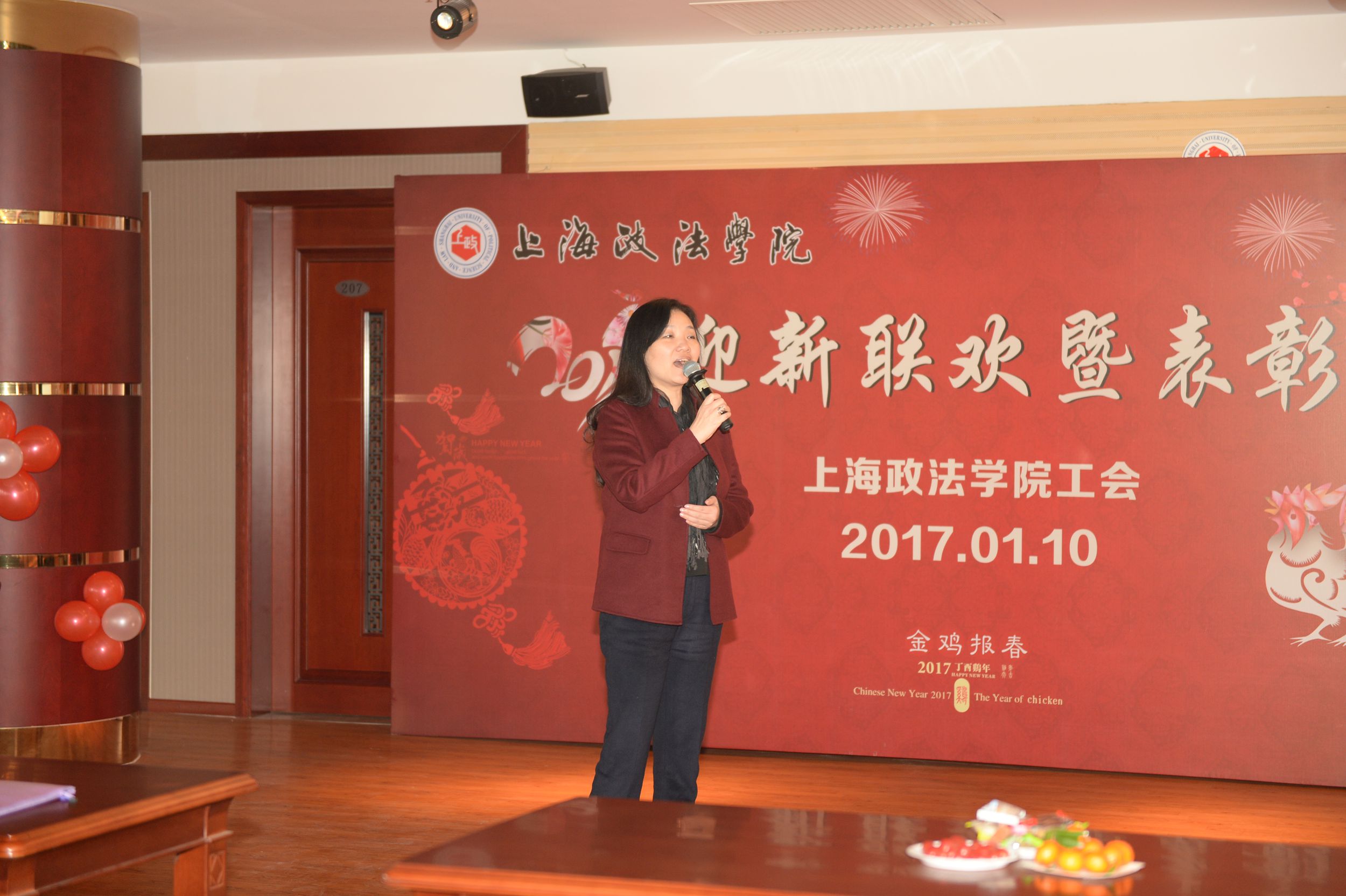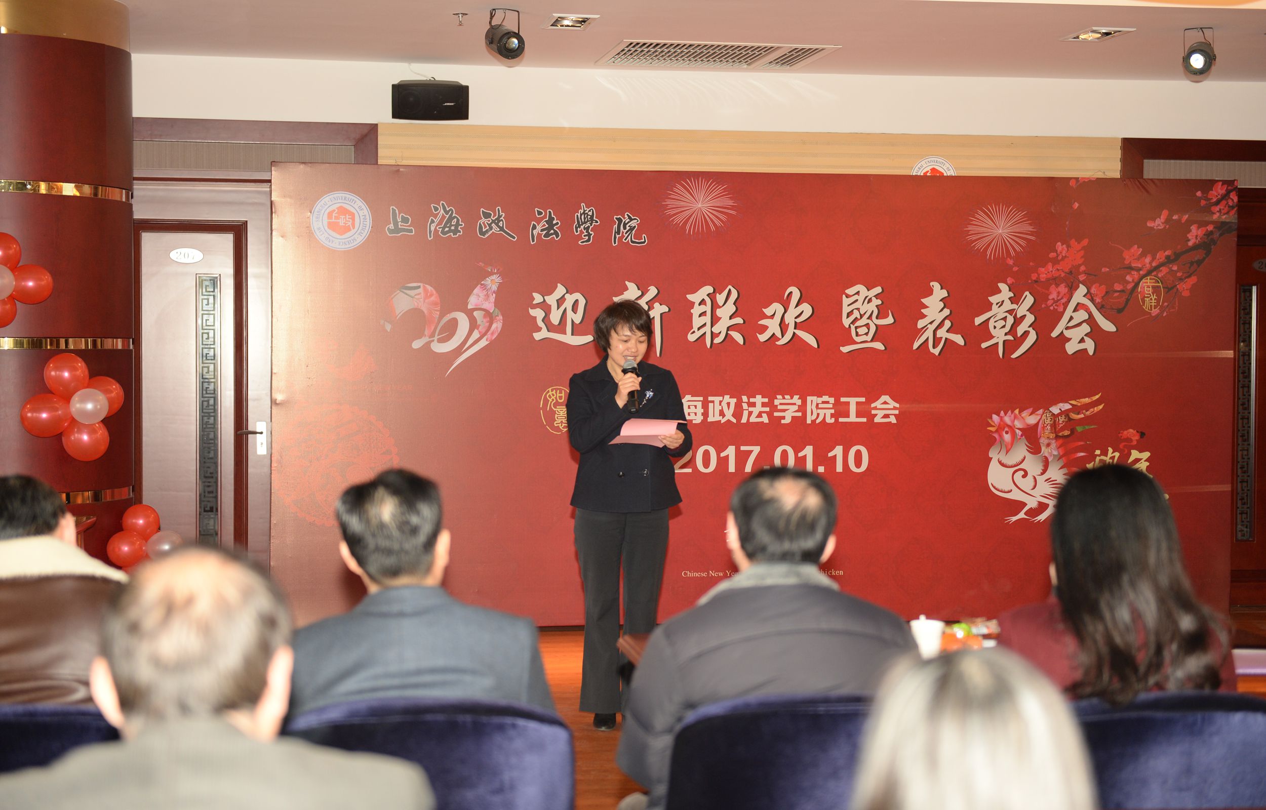 2017年1月10日中午,新利18官方客服工会2017年迎新联欢暨表彰会在教工活动中心210多功能厅隆重举行。校长刘晓红,校党委副书记、纪委书记吴强,校党委副书记、副校长、工会主席周银娥,副校长关保英,工会常务副主席周毅,以及党总支书记、劳模、部分校工会委员、二级分工会主席、委员等出席了此次工会联欢暨表彰会。