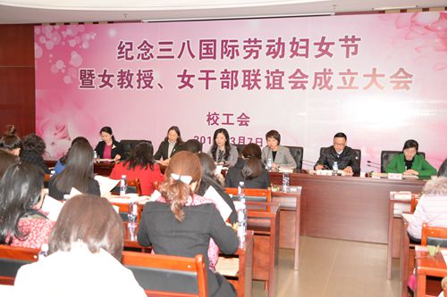 3月7日中午,新利18官方客服于综合研究中心107会议室隆重召开纪念三八国际劳动妇女节暨女教授、女干部联谊会成立大会。校长刘晓红、校党委副书记、副校长周银娥、副校长胡继灵、各二级单位党总支书记、分工会主席、女工委员以及女教授、女干部联谊会会员和部分女大学生代表近百人出席会议,校党委副书记、副校长周银娥主持会议。
