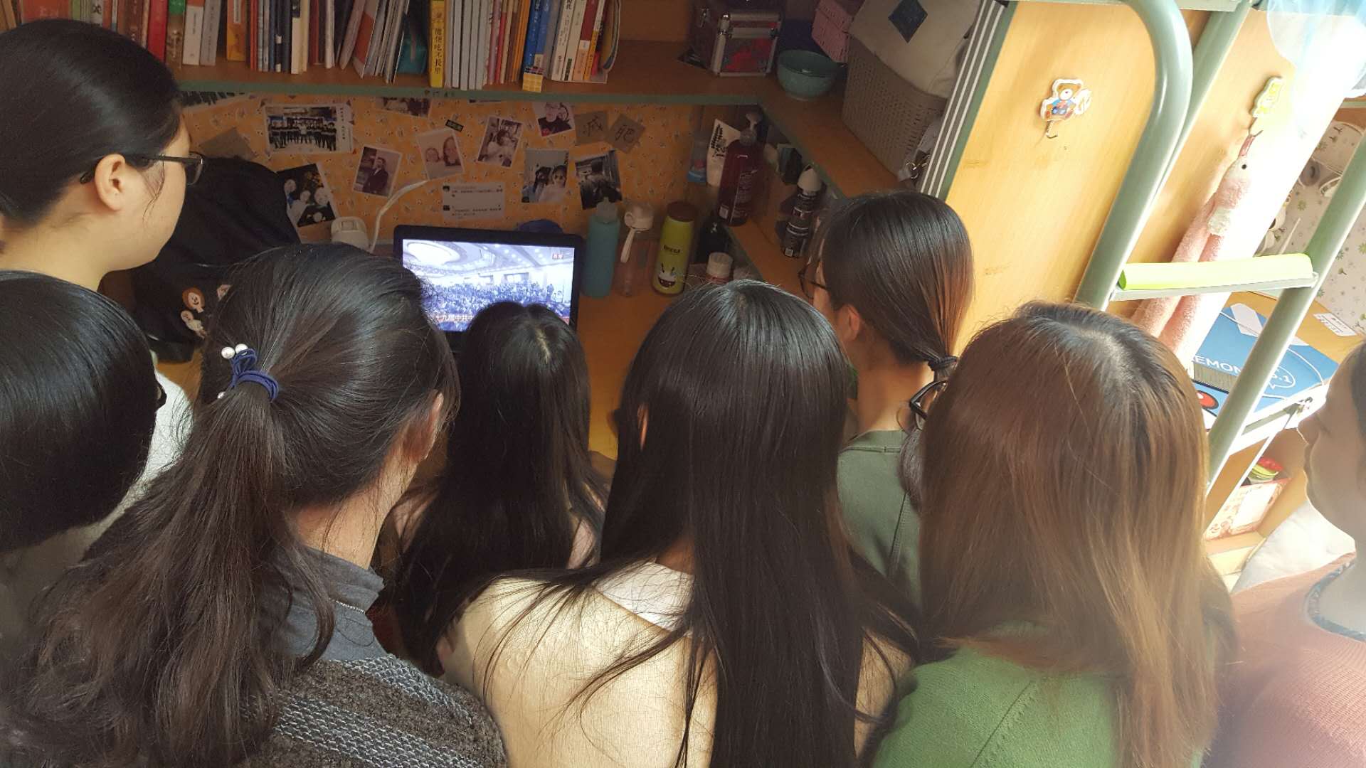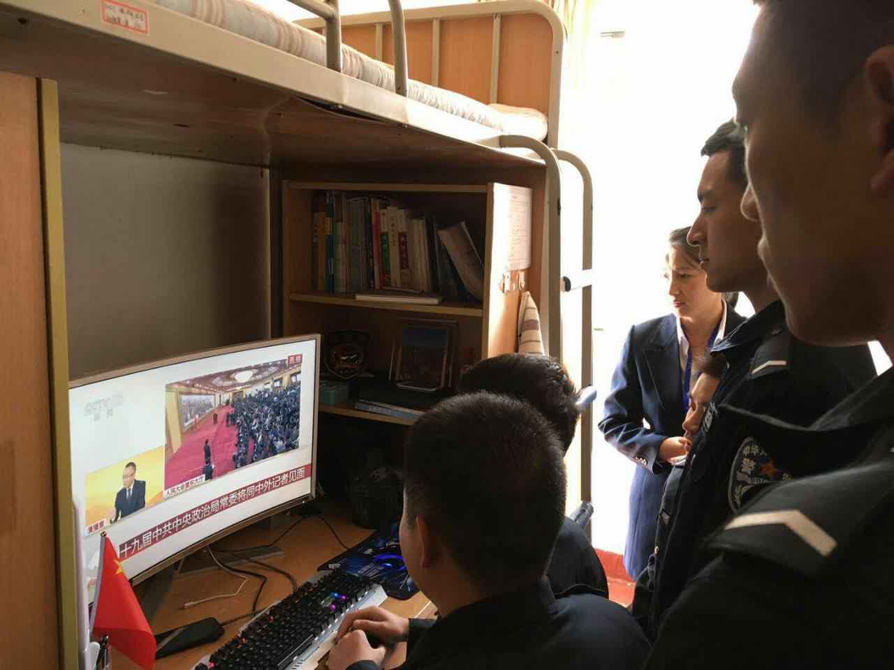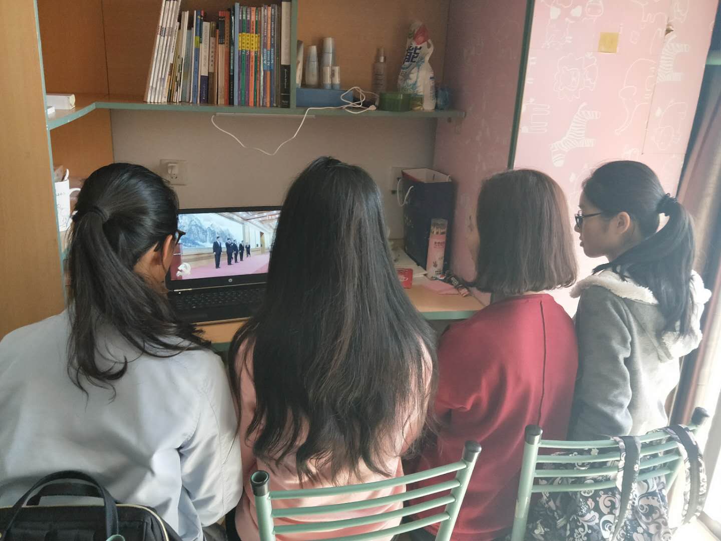 10月24日,中国共产党第十九次全国代表大会圆满完成各项议程后,在北京顺利闭幕。10月25日中午11点45分,选举产生的新一届中共中央政治局常委在人民大会堂同中外记者见面。在我校学生社区,来自不同楼宇的同学们都早早地围坐在寝室电脑前认真收看见面会的直播。