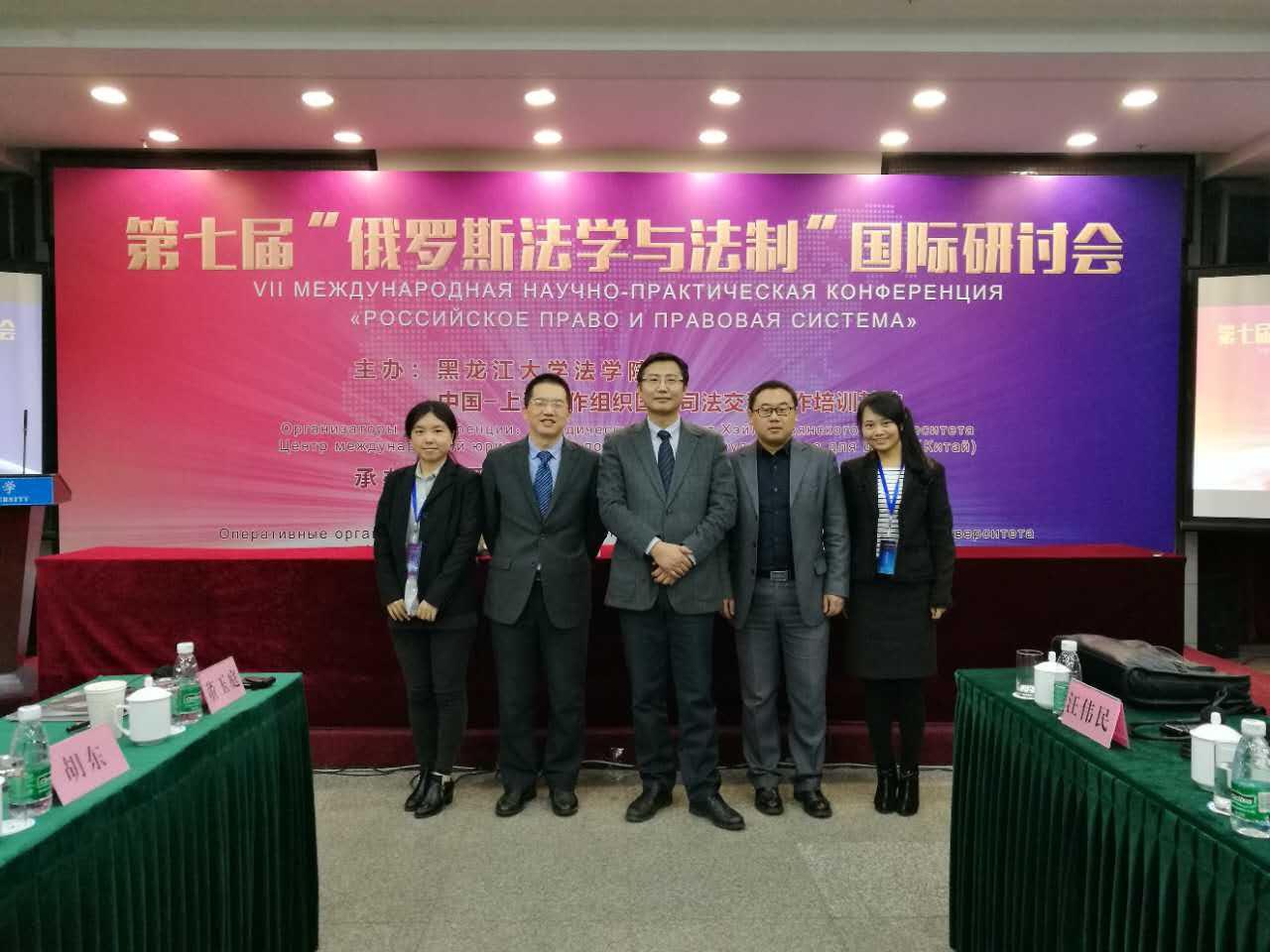 11月4-5日,由上合培训基地与黑龙江大学法学院共同举办的第七届“俄罗斯法学与法制”国际学术研讨会在黑龙江省哈尔滨市召开,我校上合培训基地管委会秘书处副秘书长、国际事务与公共管理学院院长汪伟民,上合培训基地管委会秘书处副秘书长、发展规划处处长石其宝,上合培训基地管委会秘书处研究咨询部副主任贾少学,上合培训基地管委会秘书处合作部副主任王雅鹃等一行七人受邀参加研讨会。