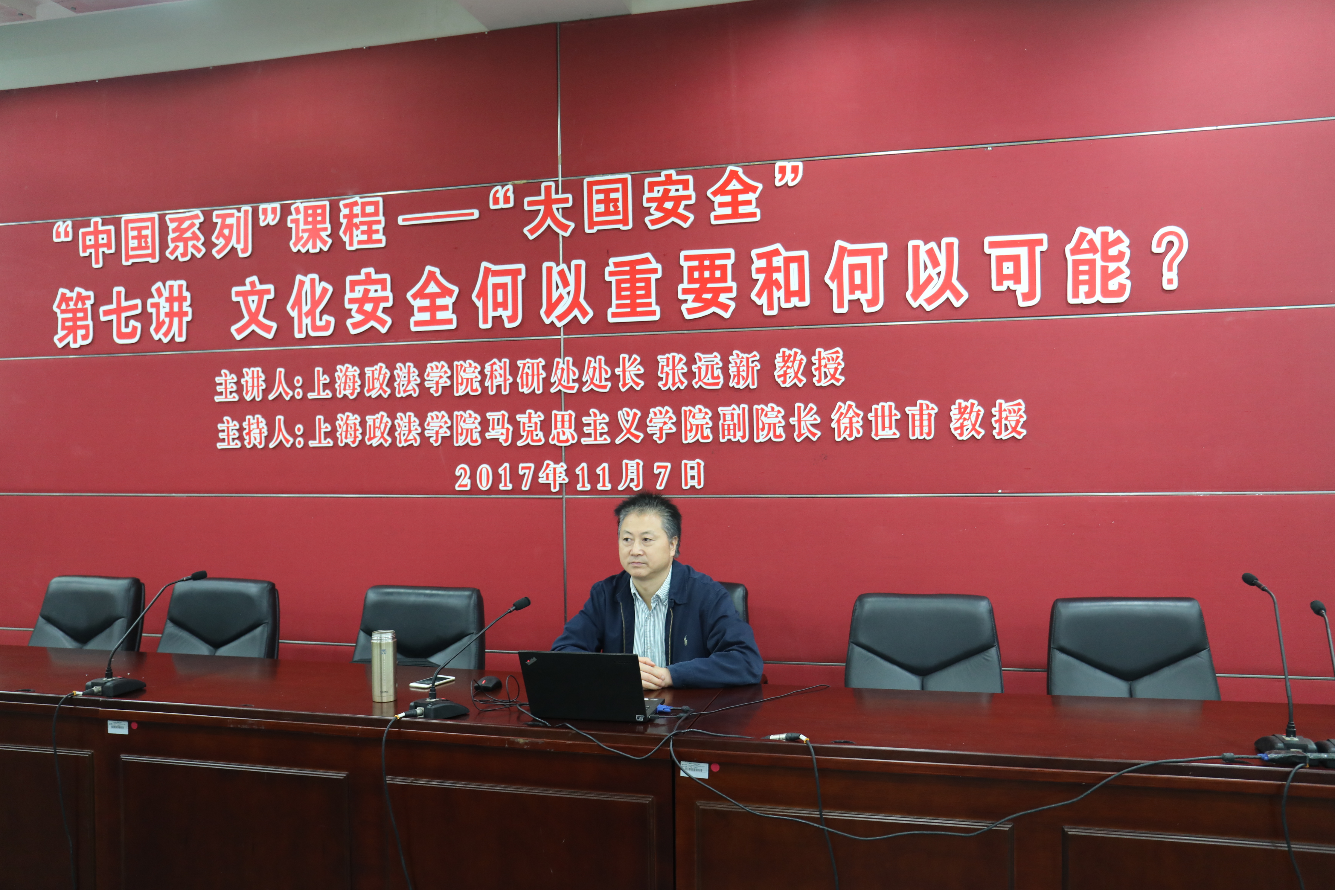 11月7日晚,科研处处长张远新教授为“中国系列”课程“大国安全”第二季授课,主题是“文化安全何以重要和何以可能”。马克思主义学院副院长徐世甫教授主持互动。