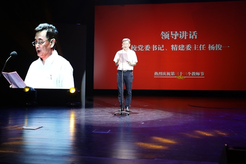 校长、精建委主任刘晓红致辞。她指出,作为一名光荣的人民教师,用真情传播智慧的火种,用勤劳和汗水培育优秀人才,我们无怨无悔。33年前,上政人在野马浜这片田野上白手起家,竖起第一幢教学大楼、第一幢学生宿舍、第一幢图书馆,在庆祝第一届教师节的同时迎来了第一批学员。33年来,我们秉持“立足政法、服务上海、面向全国”的办学定位,坚持特色发展、卓越发展和创新发展,推进学校实现了一个又一个新的突破。这一系列成果的取得来自不易,凝聚着全校教职员工和广大师生同心协力、砥砺前行三十余载的劳动和心血。