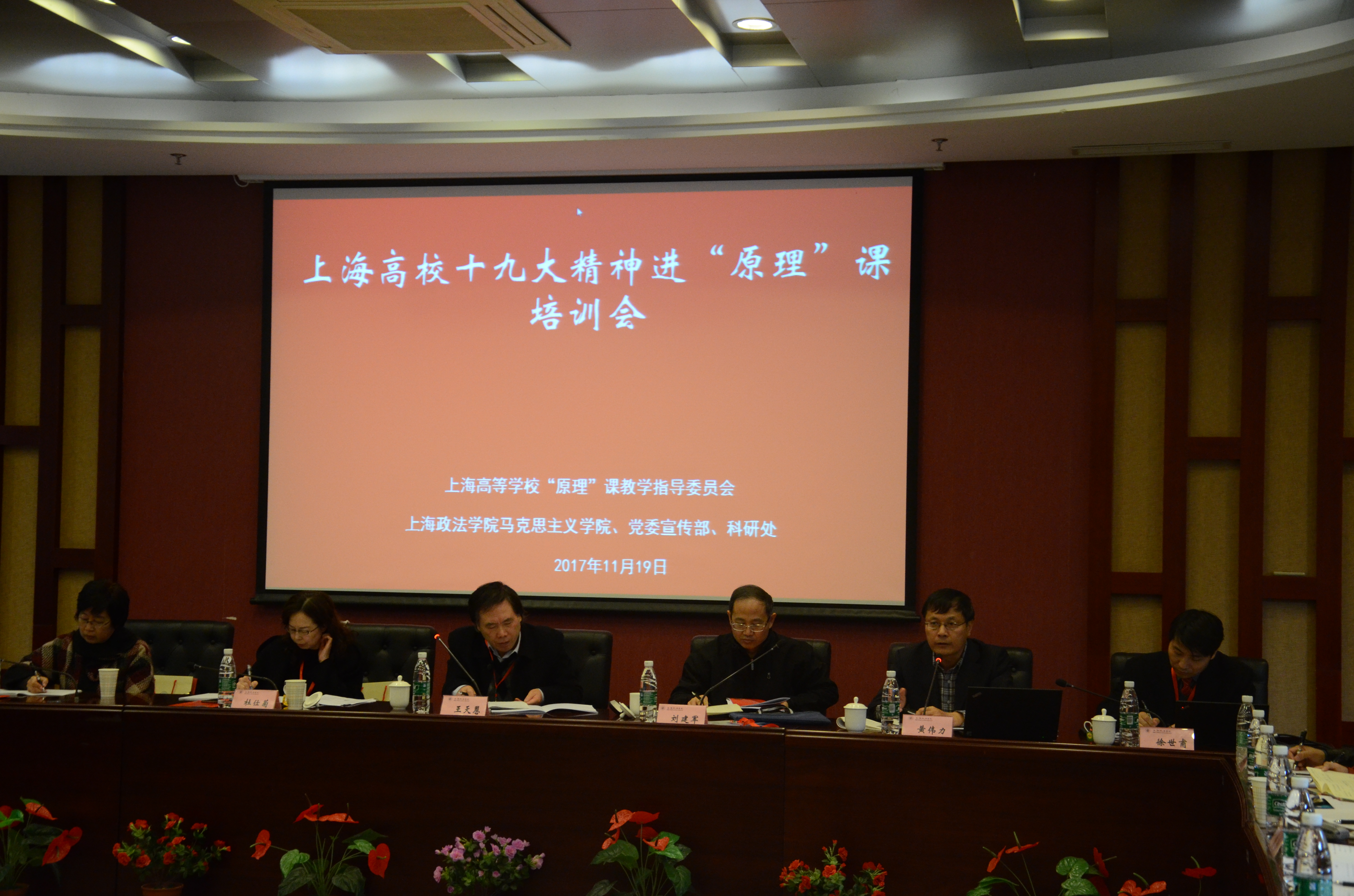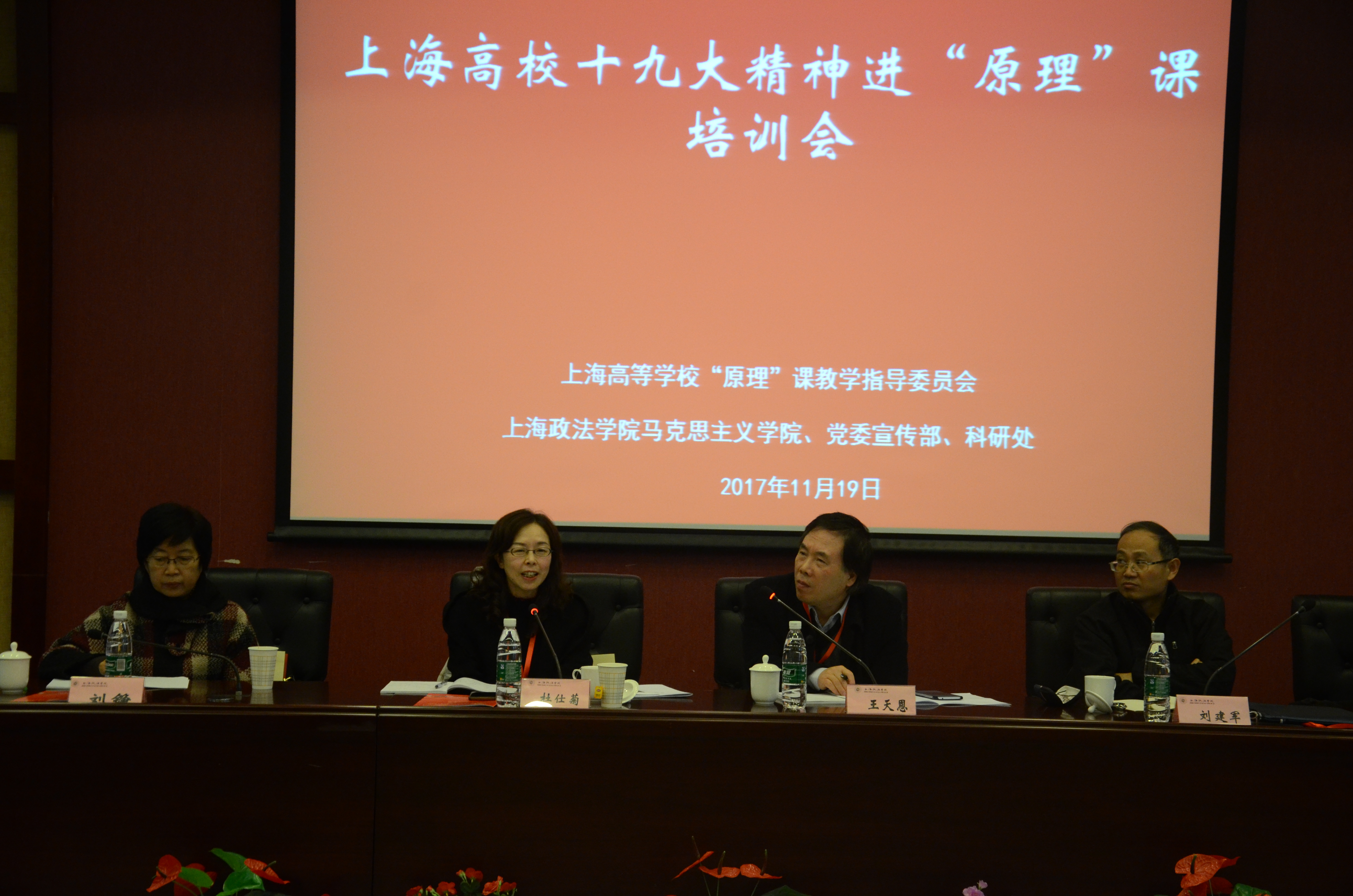 11月19日,由上海高校思想政治理论课《马克思主义基本原理概论》分教指委主办,新利18官方客服马克思主义学院、党委宣传部和科研处承办的“上海高校十九大精神进‘原理’课培训会”在新利18官方客服隆重召开,来自中国人民大学、复旦大学、上海交通大学、华东师范大学、同济大学、上海财经大学、上海大学、上海师范大学等高校的60余位专家学者出席培训会。会议由上海高校思想政治理论课《马克思主义基本原理概论》分教指委主任委员、上海大学马克思主义学院王天恩教授主持。