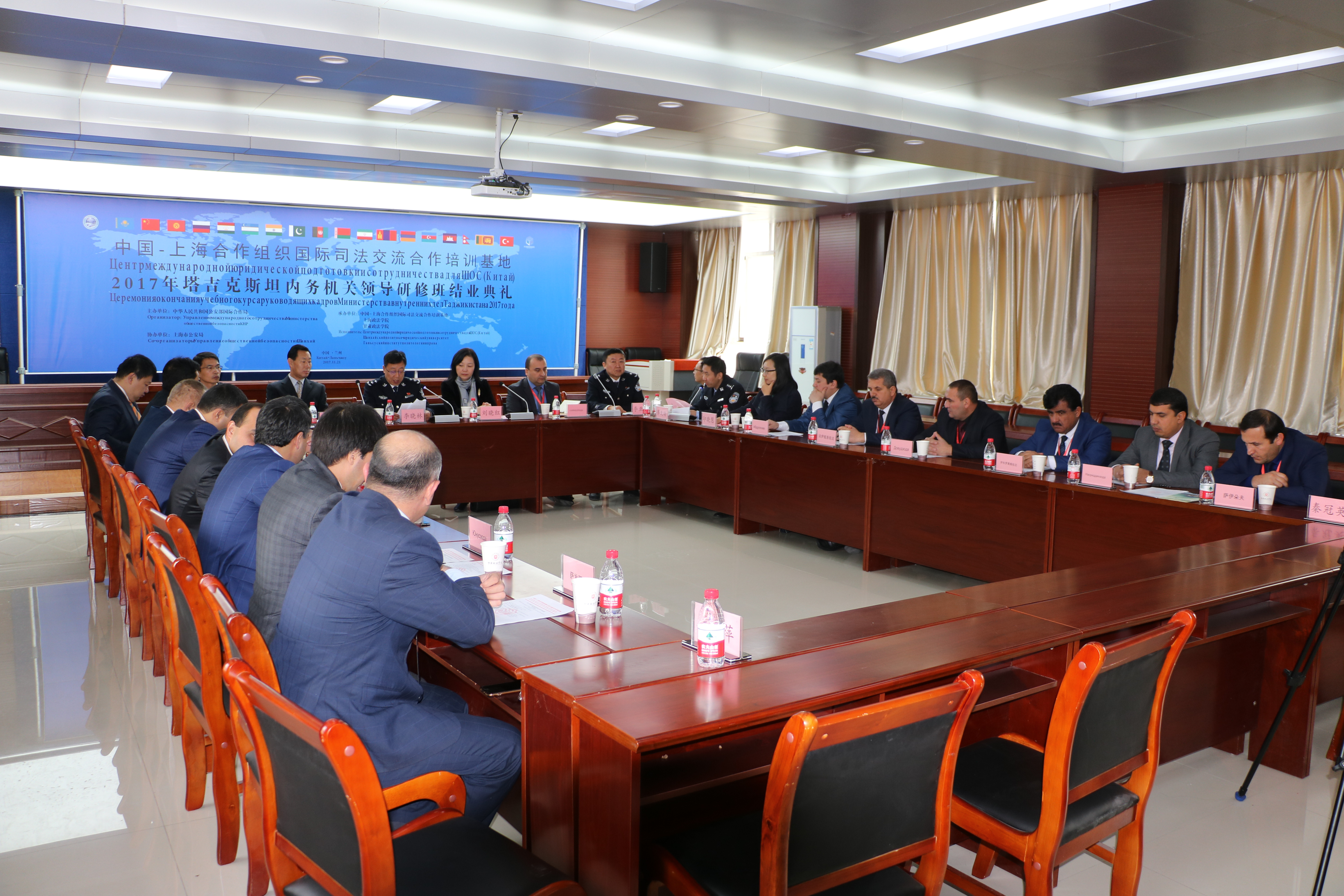 11月21日上午,塔吉克斯坦内务机关领导研修班结业典礼在甘肃政法学院举行。新利18官方客服校长、中国-上海合作组织国际司法交流合作培训基地管委会主任刘晓红教授,甘肃省公安厅党委委员、副厅长李晓林,甘肃政法学院副校长魏克强教授,甘肃省公安厅出入境管理局局长、国合处处长、国际刑警组织甘肃联络中心主任李亚宏,甘肃政法学院公安分院院长陈君武教授,上合培训基地管委会秘书处副秘书长陈校,中南财经政法大学反恐中心甘肃基地主任秦冠英,上合培训基地管委会秘书处培训部副主任印晓慧等出席结业典礼。典礼由新利18官方客服党办校办主任、上合培训基地管委会秘书处副秘书长高志刚主持。