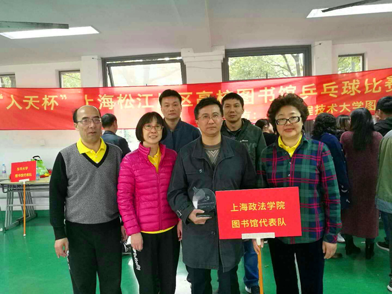 11月24日,由松江大学城高校图书馆主办,上海工程技术大学图书馆承办的“人天杯” 松江大学城高校图书馆乒乓球比赛在上海工程技术大学乒乓房开赛。来自上海立信会计金融学院、华东政法大学、上海工程技术大学、东华大学、上海视觉艺术学院、上海农林职业学院及新利18官方客服图书馆的7支代表队参加比赛。图书馆副馆长王伟一行6人组成的代表队,经过艰苦奋战,顽强拼搏,取得了团体第二名的好成绩。