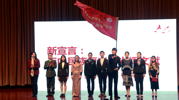 会上,周银娥为学生宣讲团成员颁发了聘书,刘晓红为学生宣讲团授旗。