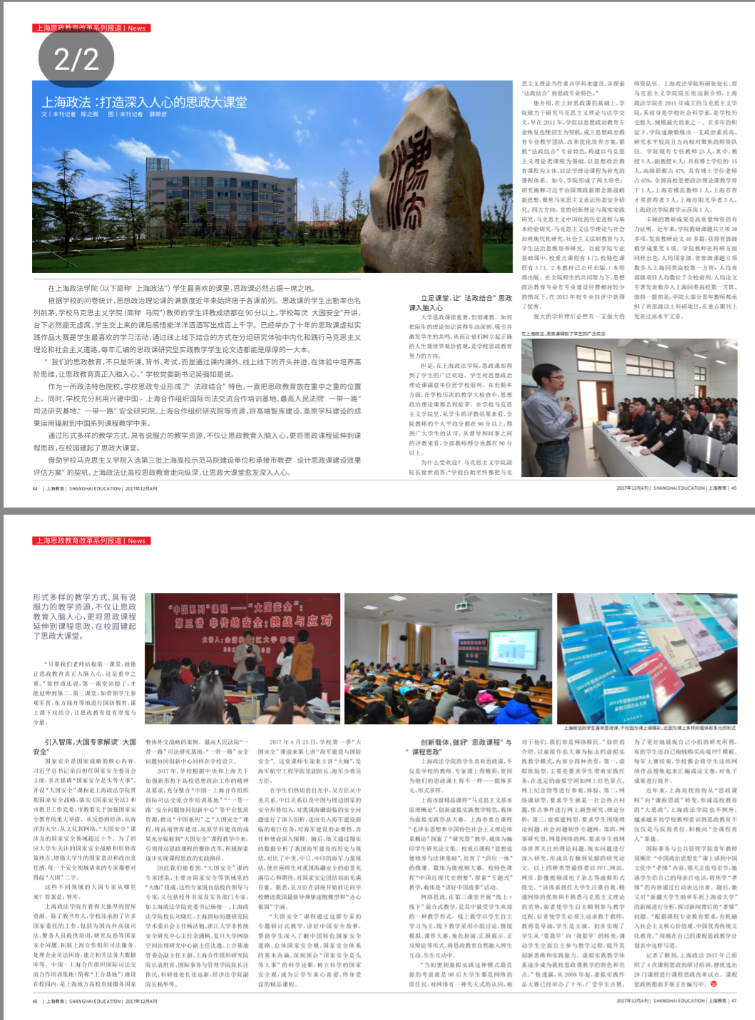 2017年12月的《上海教育》杂志专题报道了我校思政课程改革,以下是报道摘要: