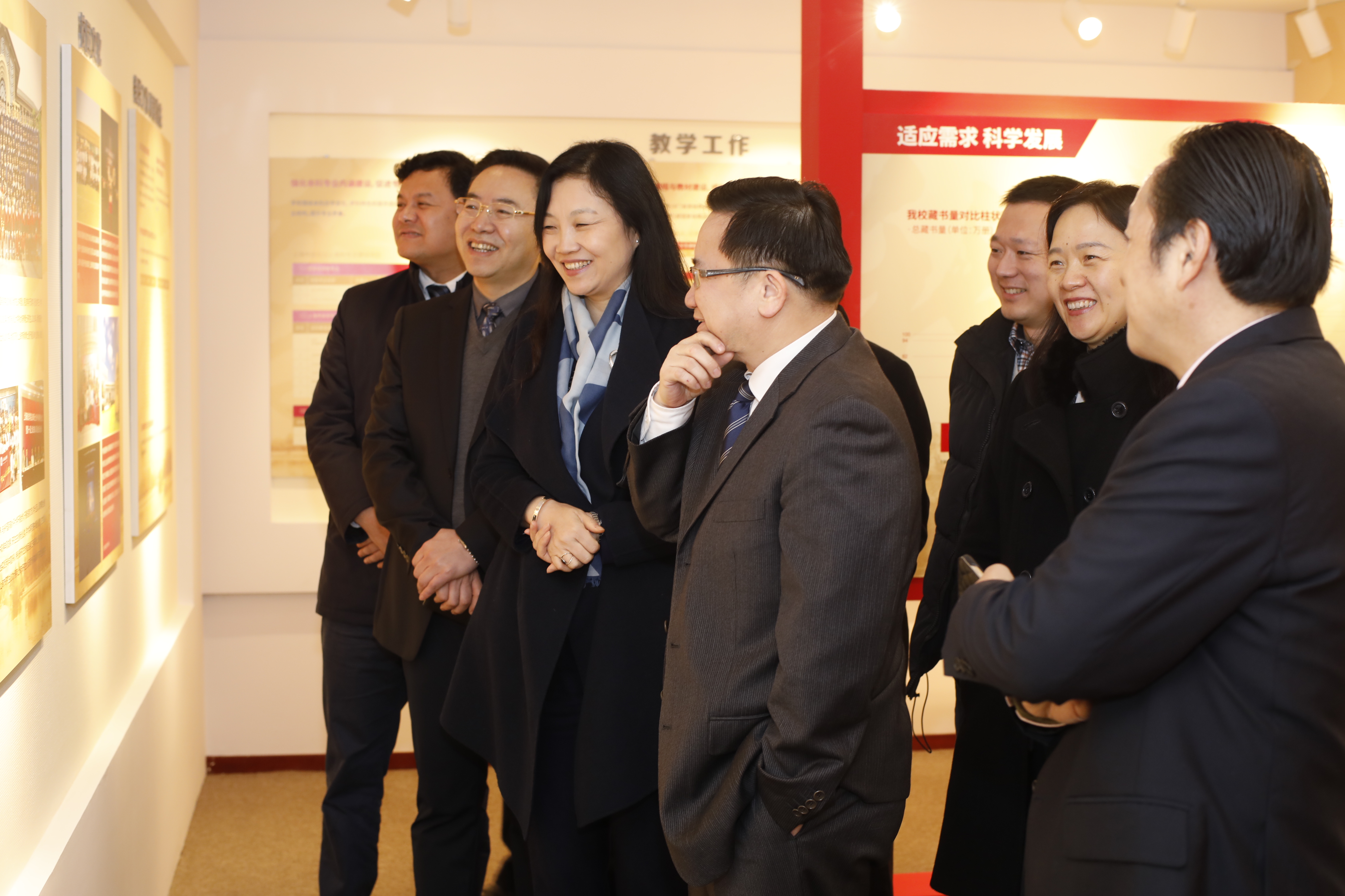 校史陈列室位于综合研究中心二楼,总面积150平米左右,分三个展室,以展板、文字、图片和实物相结合的形式,全面、真实地展示了学校自1984年创办以来三十多年的发展历程和取得的巨大成就。校领导听取了对校史陈列室布局设计以及筹建情况的介绍,依次参观了各个展区,不时驻足交流。