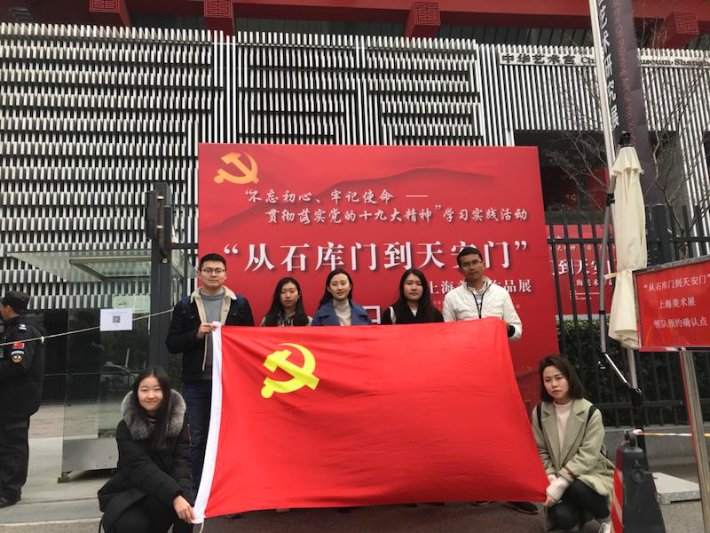 新学期伊始,经济管理学院学生党支部组织支部党员、入党积极分子参观了中华艺术宫举办的“从石库门到天安门”的美术展览。