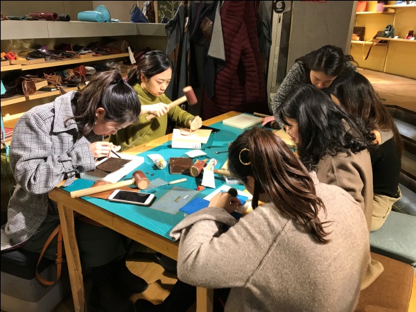 3月20日下午,经济管理学院工会组织女老师们在静安大悦城手工大师店内做手工——DIY皮具。
