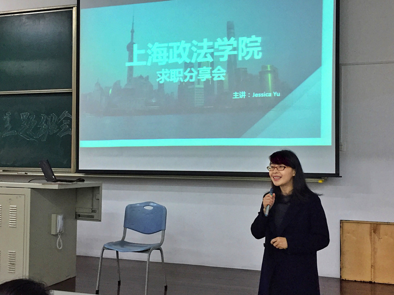 本次活动邀请了小牛招聘的资深讲师Jessica Yu分享求职经验及技巧。Jessica Yu通过自身的求职经历,为同学们分析了近年来的就业数据与就业形势,告诉大家求职之路是一个不断尝试、不断自我突破、不断积累经验的过程。她表示,求职并无捷径,因而要以准确的自我定位为基础进行提前规划,包括自我定位与企业定位,其中自我定位涵盖了对自我的认知、对自身职业素养的认知,以及对核心专长的定位等内容。分享会中,2015级学生徐梦雨和大家分享了自己的实习经历,其积极的工作态度与方式得到了企业的认可。