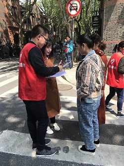 参观结束后,活动组织党员佩戴党徽、穿着党员志愿者服装在一大会址附近的广场宣传环保知识、身体力行开展党员志愿者环保行动。活动共分为两部分,第一组十名同学捡拾垃圾,另一组十名同学负责向过往市民宣传环保知识。党员们主动亮出身份,用实际行动宣传环保知识,发挥先锋模范作用,赢得了周围市民的称赞。