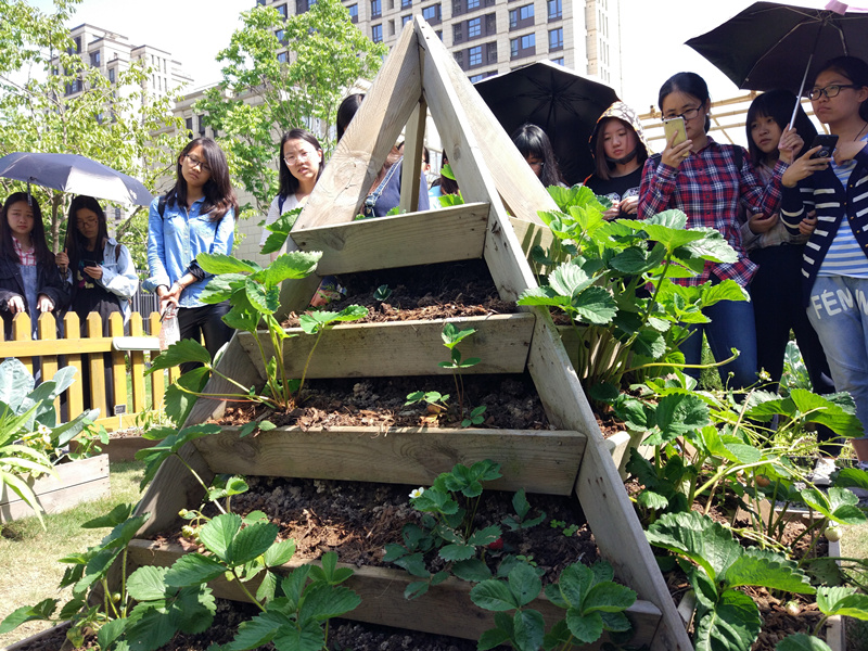 农园中遍布各种社区居民亲手种植或认养的作物:从树莓、蓝莓等水果,到土豆、萝卜、小麦、油菜等蔬菜,再到玫瑰、郁金香、茉莉、薄荷等花草作物,杂然陈布,琳琅满目。其中,还专门开辟出“一米菜园”的区域以供居民带着小朋友亲自耕作收获。通过这样的方式倡导朴门永续的生活理念,促进与自然的交流,推动绿色健康城市的发展。也藉由公众的高度参与提升公共空间品质与社区互动融合。