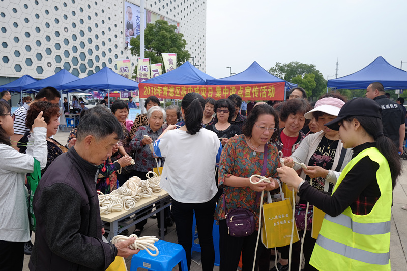 今年5月12日是汶川特大地震10周年纪念日,也是我国第十个防灾减灾日,主题是“行动起来,减轻身边的灾害风险”。上政减防灾社团-学生社区救援队应青浦区应急办邀请,参加了在吾悦广场举行的2018年青浦区防灾减灾日集中设点宣传活动,在现场分区域演示了地震自救逃生、防踩踏、防溺水、火场逃生和打绳结、应急救护等的知识和技能,并开展互动体验,邀请市民群众亲身参与。