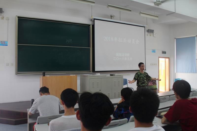 为落实征兵宣传工作,激发学生参军热情,国际法学院于5月15日下午在主教201B召开2018年征兵动员大会。大会由学院党总支副书记张顺芳主持,相关辅导员参会。