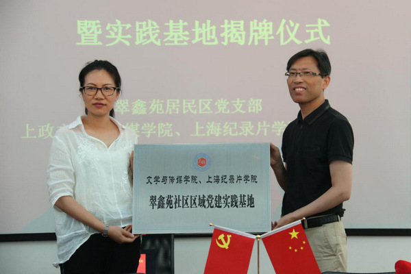 为迎接学校第一次党代会的召开,6月5日下午,文学与传媒学院、上海纪录片学院新时代服务区域党建实践主题党日活动暨文学与传媒学院、上海纪录片学院区域党建实践基地揭牌仪式在松江区翠鑫苑社区举行。翠鑫苑居民区党支部书记陆琼、副书记王琼、支部委员潘晓明,文学与传媒学院、上海纪录片学院党总支书记郭斌、学院党总支副书记周欣、学院党总支组织员王婉妮、学生党建督导员李洋以及学生党员代表参加会议。会议由陆琼主持。