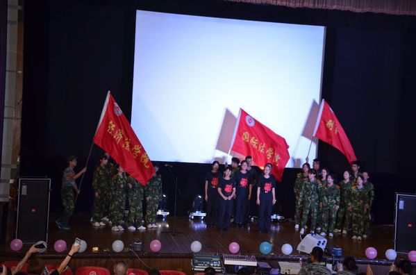 三个学院联合制作的军训视频的播放,揭开了晚会的序幕。紧接着的舞蹈串烧点燃现场气氛,将晚会迅速推上小高潮。而之后各种节目轮番登场,无一不异彩纷呈,魅力四射。由国际法学院带来的诗朗诵节目《中国少年说》展示了当代青年学生的责任感和使命感。歌唱、舞蹈、小品等节目穿插进行,一次又一次地调动起全场观众的热情,使全场气氛热烈又活跃。晚会进行到一半时,主持人邀请各排教官发表寄语,晚会又一次被推向高潮。最后,一曲《燃烧吧少年》为本次晚会画上圆满的句号。(黄静如撰稿、摄影)