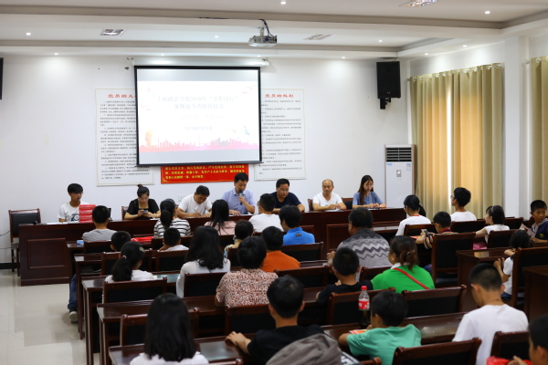 7月17日下午,外国语学院2018年大学生暑期社会实践队在安徽省黟县金家岭村村委会会议室举行新利18官方客服2018年“语你同行”暑期夏令营结营仪式。金家岭村村委会主任徐卫东,我校外国语学院团委书记伍强瑞、全体实践队员以及30余名学生营员及家长参加此次结营仪式。结营仪式由实践队长、英语专业2016级本科生高清于主持。