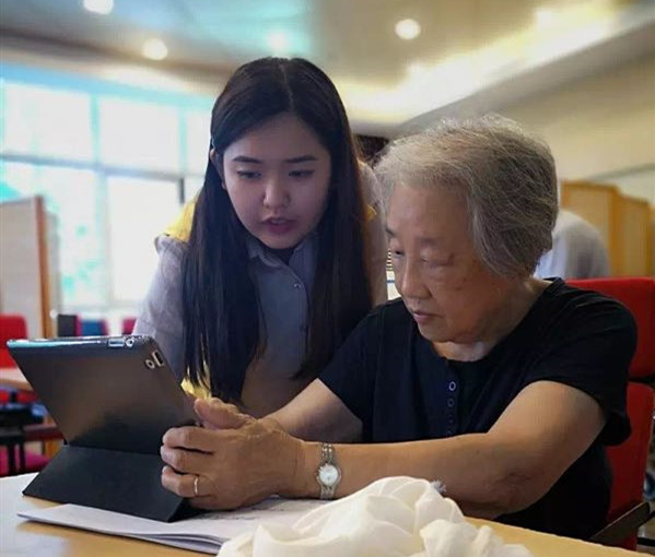 在贯彻了自己的专业知识,运用同理心,更多地站在老人的角度和思维习惯上思考问题,碰到和老人观点不同的时候,运用价值中立原则,接纳老人的观点,缩小了晚辈与前辈的代际差之外。实习生们常常询问老人的日常生活,关心老人的衣食住行,观察老人正在做的事情把握聊天的契机,寻找自己和老人共同关注的话题,互相交流经验,并给予适当的夸赞从而与老人展开顺畅的沟通。对于认知症程度较重,或者语言沟通存有困难的老人(如听力、视力严重缺损的老人),实习生们通过肢体语言和身体接触的方式,巧妙地与他们建立了关系。