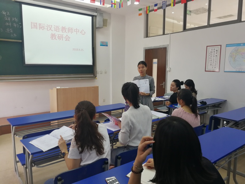 根据科学、合理、有序、稳健的原则,渠默熙带领老师们完善了本学期的教学进度表,同时确定平行班各个班级任课教师要及时沟通学生情况、教学进度、教学得失等,切实提高留学生汉语教学水平。为进一步解决教学中存在的问题,确立了“帮、带、研”的教研原则,老师之间老带新、集体备课、定期互相听课、撰写听课心得、组织教研活动。