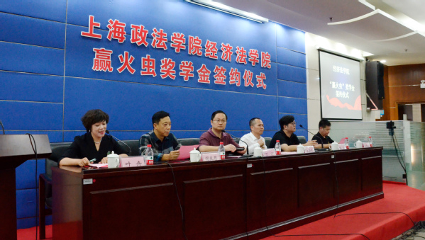10月9日下午,经济法学院“赢火虫”奖学金签约仪式在庸夫楼举行。松江区团区委书记丁汀,上海市赢火虫信息科技有限公司董事长余畅池,我校经济法学院院长兼总支书记胡戎恩,校团委书记陆嵬,经济法学院党总支副书记叶卉以及学院200多名学生出席了本次活动。活动由叶卉主持。