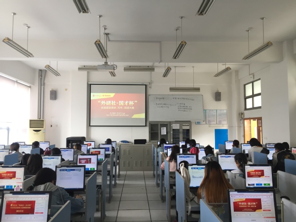 10月13日,根据大赛主办方的要求和规定,我校的阅读大赛和写作大赛在学校6个计算机房通过主办方的官方测试平台在线举行。外国语学院监考教师在教务处实验室管理科技术人员的帮助下,一方面积极排除故障,另一方面和主办方保持有效沟通,保证了比赛顺利进行,确保了我校所有到场参赛学生完成答题并获得有效的成绩。今年我校有324名学生参加了写作大赛初赛,357名学生参加了阅读大赛的初赛。