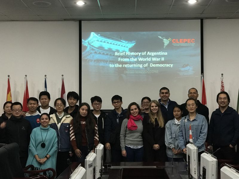 11月20日下午,上合培训基地驻访学者、拉丁美洲中国政治与经济研究中心执行主任马克为(Diego Mazzoccone)先生在明文苑A8-202为我校师生作了题为“重回民主:二战以来阿根廷简史”的精彩演讲。