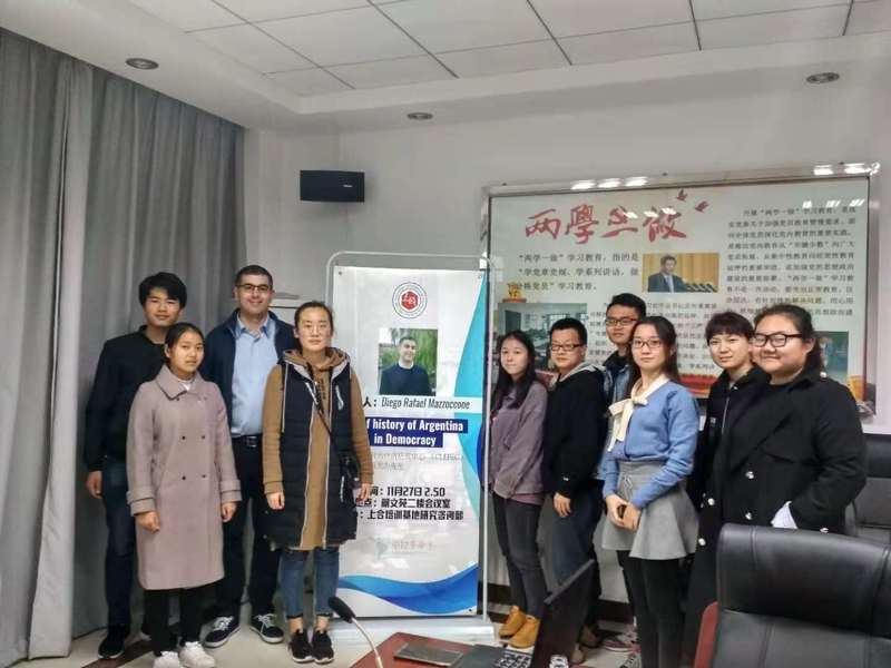 11月27日下午,上合培训基地驻访学者、阿根廷拉美中国政治研究中心执行主任马克为在明文苑A4二楼会会议室为我校师生作了关于阿根廷政治的精彩演讲。
