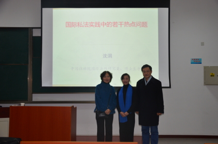 12月20日,中国社会科学院国际法研究所博士生导师、中国国际私法学会副会长沈涓研究员,在B4-105为我校师生做了题为“国际私法实践中的若干热点问题”讲座。讲座由国际法学院教授许庆坤主持,国际法学院副教授贾琳及部分研究生、本科生出席了本次讲座。