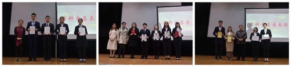 会议的第一个环节是表彰。首先表彰的是在模拟法庭学科竞赛中取得优异成绩的学生。陈毅炜检察官、王娜、盛红生教授、陈风光先后为2018年“炜衡杯”上海市第六届九校模拟法庭竞赛亚军、2018年第一届“金企鹅杯”全国大学生模拟法庭竞赛三等奖、2018年国际刑事法院模拟法庭英文竞赛全国二等奖等获奖学生颁奖;第二项表彰的是荣获奖学金的优秀学生。由刑事司法学院辅导员老师与各奖学金出资人分别为荣获国家奖学金、上海市奖学金、校长奖学金、念谊奖学金、熠世奖学金、重固-文仲奖学金的优秀学生颁奖。最后表彰的是社会实践类获奖,王双、李洋、陈浩分别为荣获2018年中国青年志愿服务项目大赛全国银奖、上海市银奖,2018年“创青春”上海市大学生创业大赛铜奖,2018年“知行杯”上海市大学生社会实践项目大赛三等奖,2018年第三届上海市大学生安全知识竞赛西片区三等奖以及2018年第五届中国野战运动冠军赛上海赛区冠军的优秀学生颁奖。