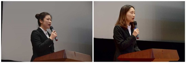 活动的第三个环节进行了优秀学生代表宣讲。王前鑫和陈丹彤两位优秀学生代表分别进行了发言。王前鑫从学习情况、学科竞赛和社会实践三方面向大家分享了她的心得体会。陈丹彤则以“勤修笃实,心怀热忱”为主题,讲述了她一步步从初入大学的懵懂学子到校刑事模拟法庭协会的会长和院学生会主席的心路历程。