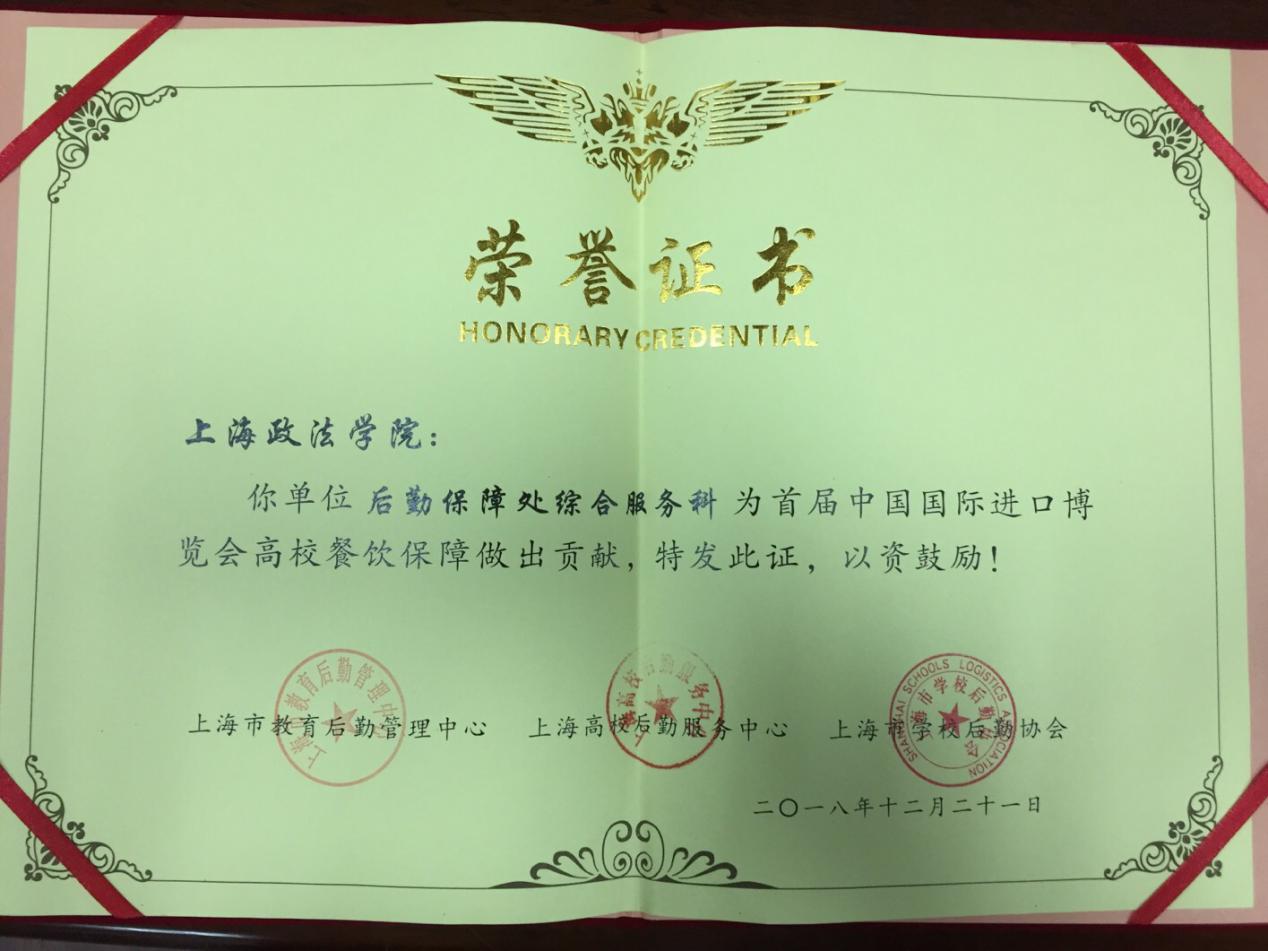 12月21日,上海高校学生餐饮工作会议在华东师范大学召开,会上对首届中国国际进口博览会高校餐饮保障荣誉集体和个人以及2018年度上海高校团体采购先进单位和个人进行了表彰。其中,新利18官方客服后勤保障处综合服务科荣获“首届进博会高校餐饮保障荣誉集体”称号,方志伟、方振虎荣获“首届进博会高校餐饮保障荣誉个人”称号;后勤保障处综合服务科王爱忠荣获2018年度“上海高校后勤团体采购先进个人”称号。