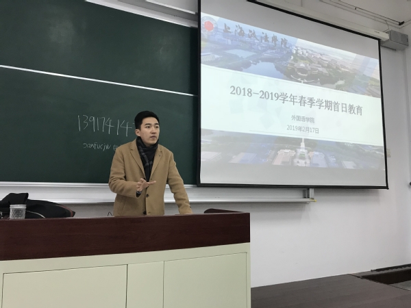 2月17日下午,外国语学院2018-2019学年春季学期首日教育在主教102A和103A教室顺利举行。