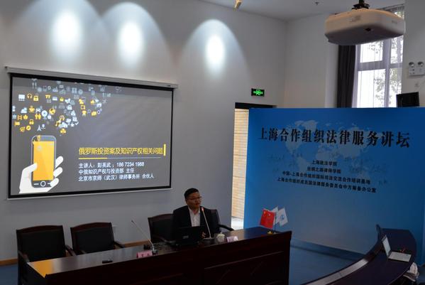 3月1日下午,京师武汉律师事务所合伙人(中俄)知识产权与投资部主任彭英武律师和原中俄托木斯克木材工贸合作区负责人罗侃应邀为上海合作组织法律服务讲坛举办主题为“对俄投资实案剖析”的讲座,并与我校丝绸之路律师学院师生进行了交流。中国-上海合作组织国际司法交流培训基地办公室合作部主任、上海合作组织法律服务委员会中方筹备办公室执行秘书长姜思源主持讲座。
