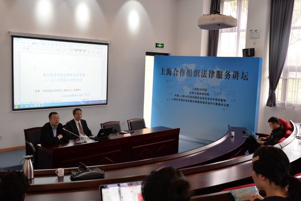 4月2日下午,中国仲裁法学会副秘书长陈建为上海合作组织法律服务讲坛就“海外投资风险法律防范和处理”专题进行了讲座,并与我校丝绸之路律师学院师生进行了交流。中国-上合基地办合作部主任、上合组织法律服务委员会中方筹备办执行秘书长姜思源主持讲座。