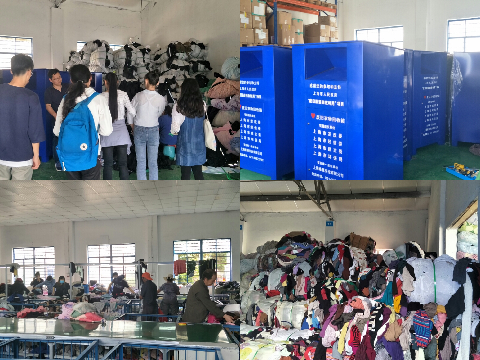 本次调研使同学们了解了捐赠衣物的后期处理状况,激励同学们为回收资源、保护环境、共建绿色节能社会的目标而努力奋斗,同时也为我院与上海缘源实业有限公司进一步合作奠定良好基础。变废为宝是环保,旧衣回收举手劳,用一份心交换一缕微笑,传一份爱带去一些温暖,尽一份力送去一个希望,建设绿色和谐社会需要你我共同的力量。(朱雨撰稿 伍新辉摄影)