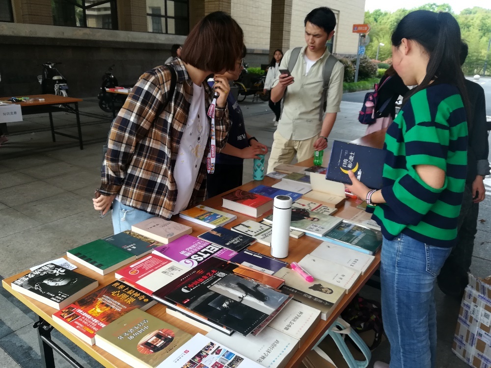 图书交换。同学携带着自己的闲置图书来这里交换,赠送,让图书发挥它的最大用处。