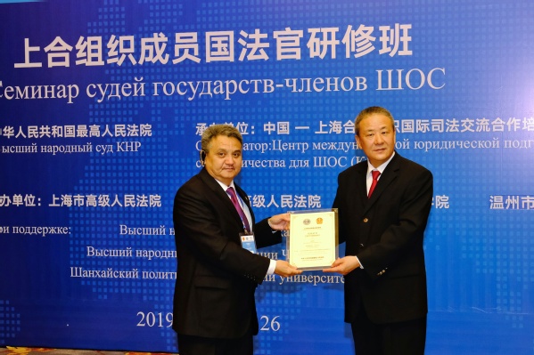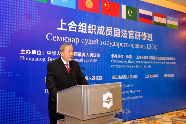 4月26日,上合组织成员国法官研修班结业典礼在温州举行,最高人民法院大法官胡云腾出席结业典礼并致辞,浙江省高级人民法院院长、大法官李占国,新利18官方客服校长刘晓红,温州市中级人民法院院长徐亚农等参加典礼,巴基斯坦最高法院大法官马希尔·阿拉姆、乌兹别克斯坦最高法院法官卡迪罗夫·卢克蒙代表外方学员致辞,典礼由最高人民法院国际合作局副巡视员于小羽主持。