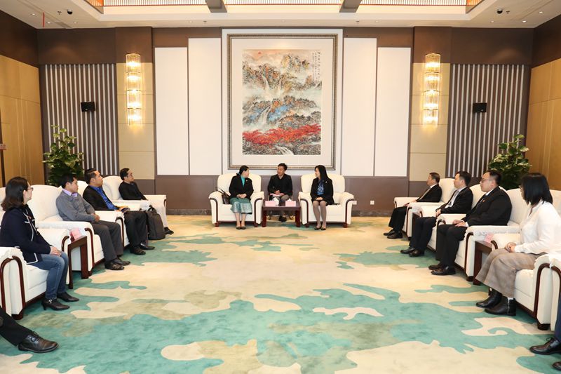 刘晓红代表学校欢迎威拉冯·潘塔冯一行的来访。她介绍了我校的发展情况、中国-上合基地建设情况,重点介绍了我校青年工作和包括老挝在内的“一带一路”来源国留学生工作的开展情况和取得的成绩。威拉冯·潘塔冯感谢刘晓红的热情接待,高度肯定了我校青年工作和留学生工作的水平,并介绍了老挝人民革命青年团的工作开展情况以及此次老挝青年代表团访华的感受。