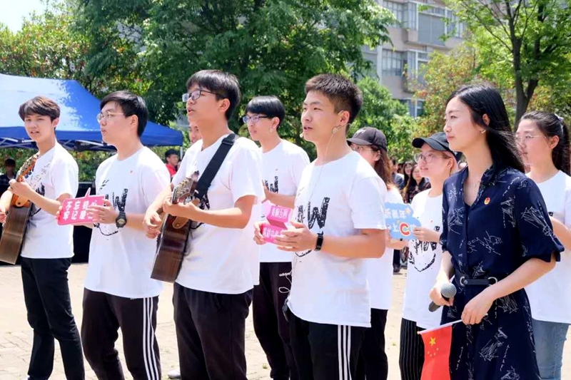 法律学院与校大学生艺术指导中心共同带来音乐快闪节目《我和我的祖国》,上海纪录片学院全程摄制。校领导与师生们一齐挥舞国旗、放声歌唱,用嘹亮的歌声尽情表达对伟大祖国的热爱与祝福。