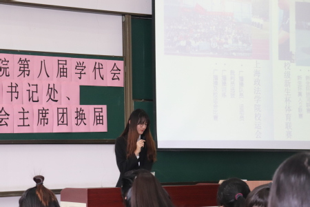 在宣布竞选程序与规则后,竞选人员分别从竞选优势、在团学的工作感悟、对所竞选岗位的认识及工作设想等方面展开演讲。本着公平、公正、公开的原则,最终推选出了新一届的学代会成员。