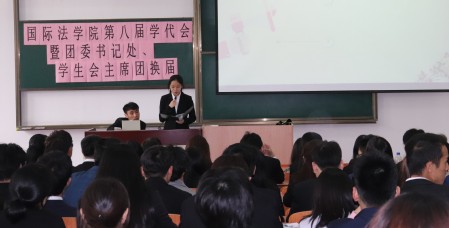 5月7日下午,国际法学院在B4-104举行了第八届学代会暨团委书记处、学生会主席团换届活动。国际法学院党总支副书记张顺芳、国际法学院团委书记周洁以及全体团学成员参加了此次活动。