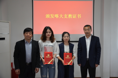 朱和平与王祥修为本次援疆支教归来的同学颁发了新疆支教荣誉证书。