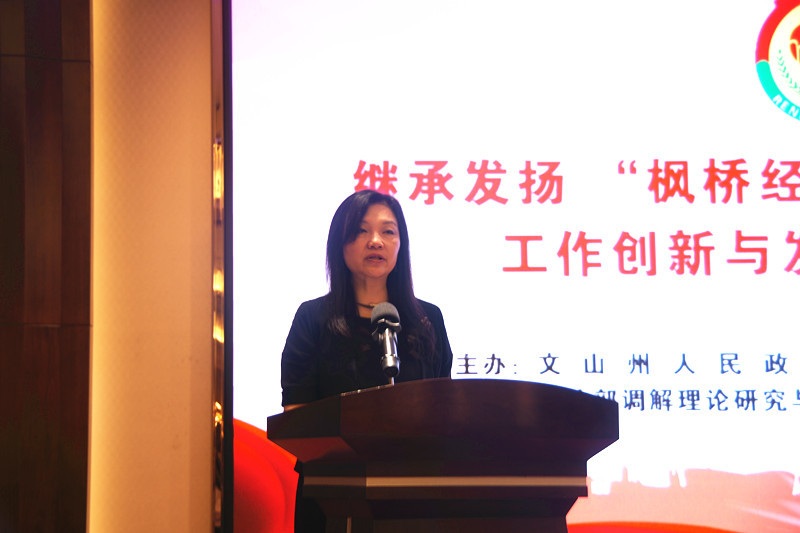 刘晓红指出,新利18官方客服是全国首家开设法学人民调解本科专业方向的高等院校。近年来,学校在调解理论研究与人才培养方面持续努力,取得了一定的成效,在全国产生了较大的反响,初步形成了品牌。今年3月,司法部批准在学校设立调解理论研究与人才培训基地,并指导学校成立了全国首家调解学院。今天的研讨会,是司法部调解理论与人才培训基地成立以来的一次重要学术活动,贯彻了司法部的要求,体现了调解基地的宗旨,积极探索教学研究部门与实务部门协同合作的新模式,不断拓展联合培养调解人才的新渠道,努力打造中国调解理论研究和实践探索紧密结合的高地。学校的科学研究、人才培养和事业发展离不开地方政府、实务部门的支持和帮助。2018年9月,在文山州政府领导的关心支持下,我们双方签署了战略合作协议,决定充分发挥双方优势,在学科专业建设、队伍建设、人才培养、干部培训、服务社会和文化传承创新等开展全方位的合作。今天的研讨会,也是落实合作协议的具体举措。希望在双方共同努力下,以此为新的起点,不断深化合作、拓展合作项目,结出更多的合作成果。